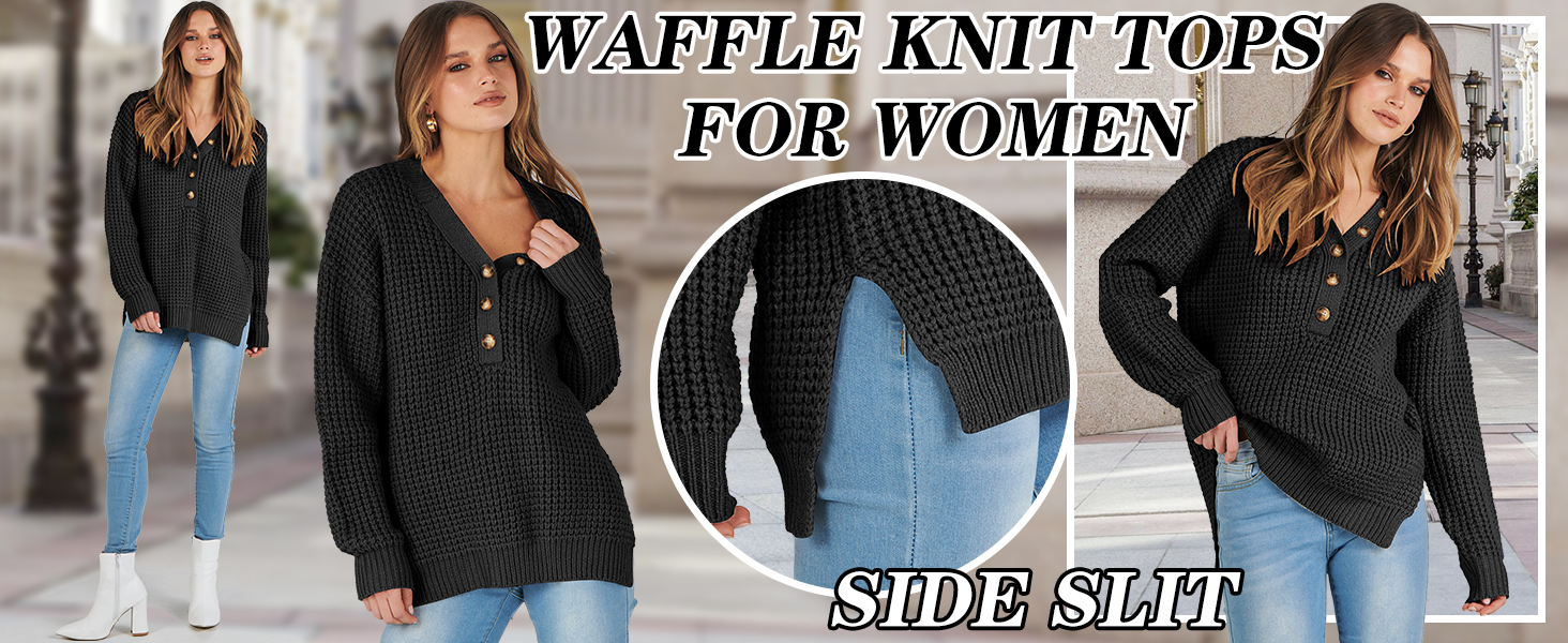 Women's Waffle Knit Half Zip Pullover Casual Sweatshirt