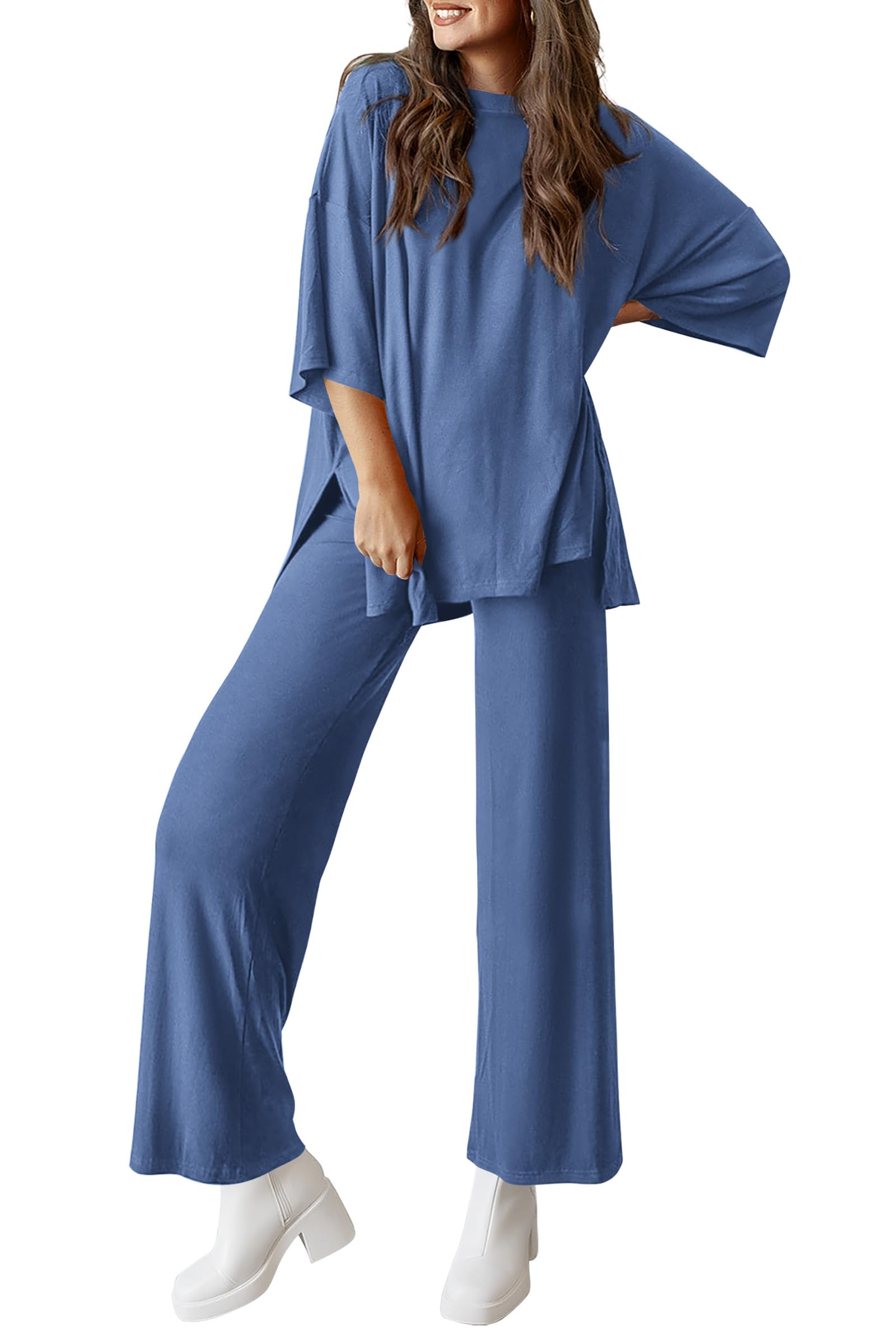 Women’s Lounge Set Comes in Two Pieces, with A Top and Pants Included, Giving You The Option to Mix and Match. The Long Pants are Equipped with Two Side Pockets, Providing Extra Storage Space for Your Essentials. The Tunic Blouse Top in This Track Sets Features A Crewneck and Split Hem Design, Bringing A Cozy Fit and Stylish Looks.