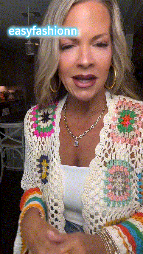 This is a Bohemian-style crochet cardigan with an overall design that exudes a retro and free vibe. Made by hand crochet, the fabric is perforated and breathable, featuring excellent skin-friendliness and breathability. The crochet patterns on the hem and edges are exquisite and delicate. The flared sleeves further enhance the romantic and casual style of Bohemia.