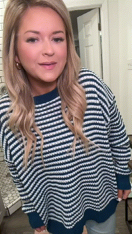 Add some highlights to your winter look. This lightweight sweater features a simple round neck design, which can also be pulled up to the shoulders to create a fashionable off shoulder sweater. The classic striped design is distinctive and gives people a youthful and sunny feeling.
