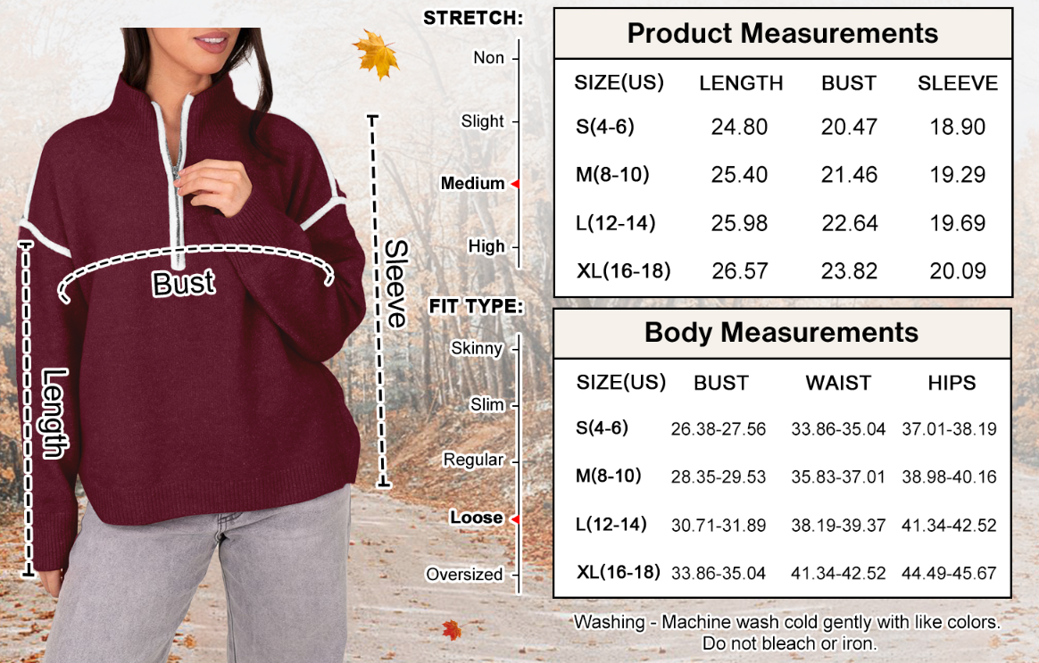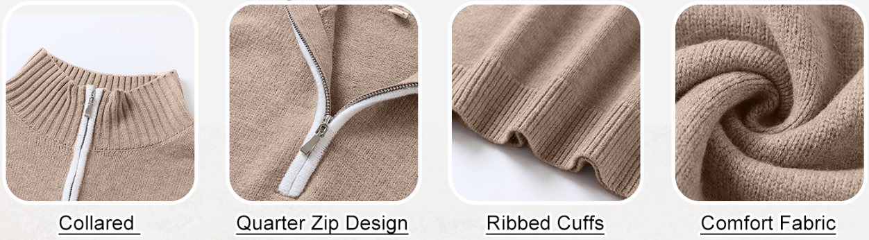 This women's color block sweater features a quarter zip, long sleeves, knit v neck collared design, and a loose fit. It's perfect for daily wear, the office, outdoor activities, as well as vacations and trips.